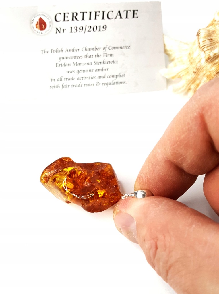 *** Naturalny i prawdziwy BURSZTYN *** SREBRO 925 *** CERTYFIKAT AUTENTYCZNOŚCI ***