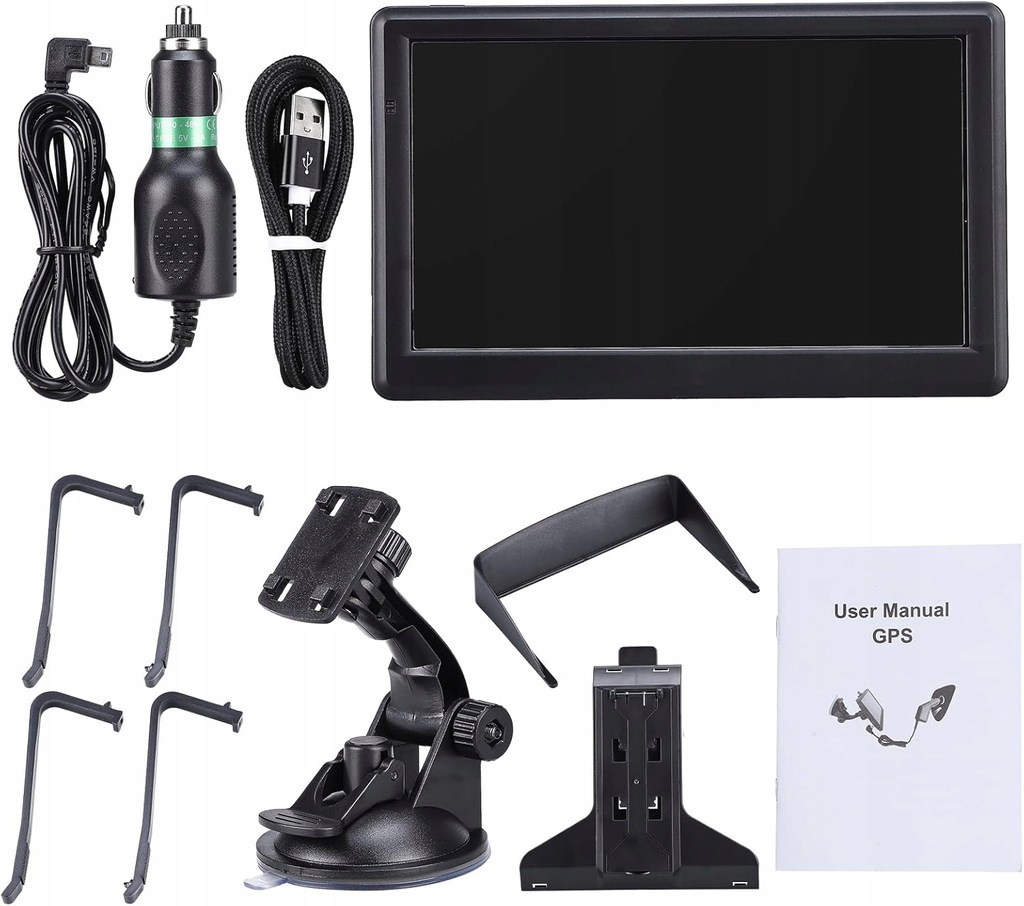➡️ Dołączone komponenty: Nawigacja, przyssawka z zaciskiem tylnym, ładowarka samochodowa, kabel mini USB