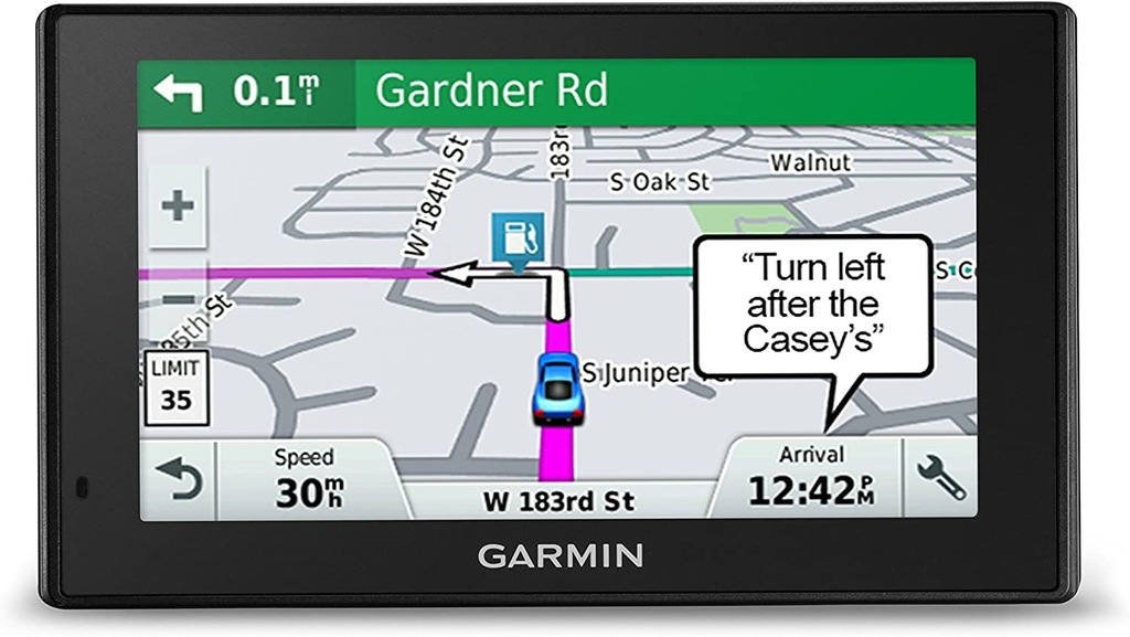 Alerty dla kierowców zwiększające ich świadomość, obejmujące m.in. zbliżające się ostre zakręty, strefy szkolne, zmiany prędkości i nie tylko Jasny, 5,0-calowy nawigator GPS z wyświetlaczem umożliwiającym zmianę orientacji przez rozciągnięcie, aby powiększyć oraz to urządzenie pamięci masowej USB, kompatybilne z systemem Windows XP lub nowszym oraz Mac OS X Zestaw głośnomówiący Bluetooth i nawigacja aktywowana głosem Konfigurowalne powiadomienia ze smartfona4 umożliwiają wyświetlanie połączeń, SMS-ów i innych alertów aplikacji na ekranie nawigacji
