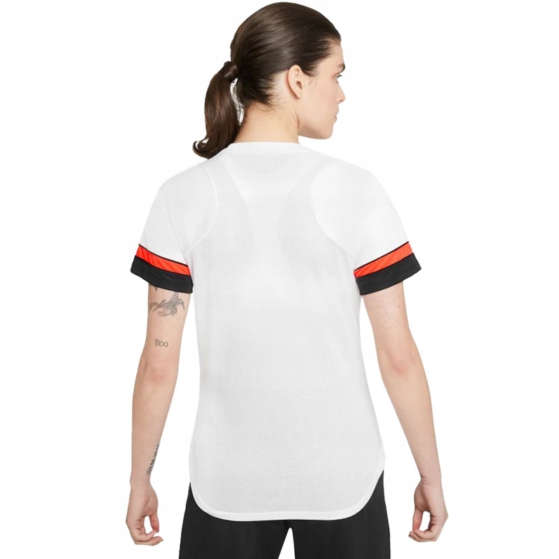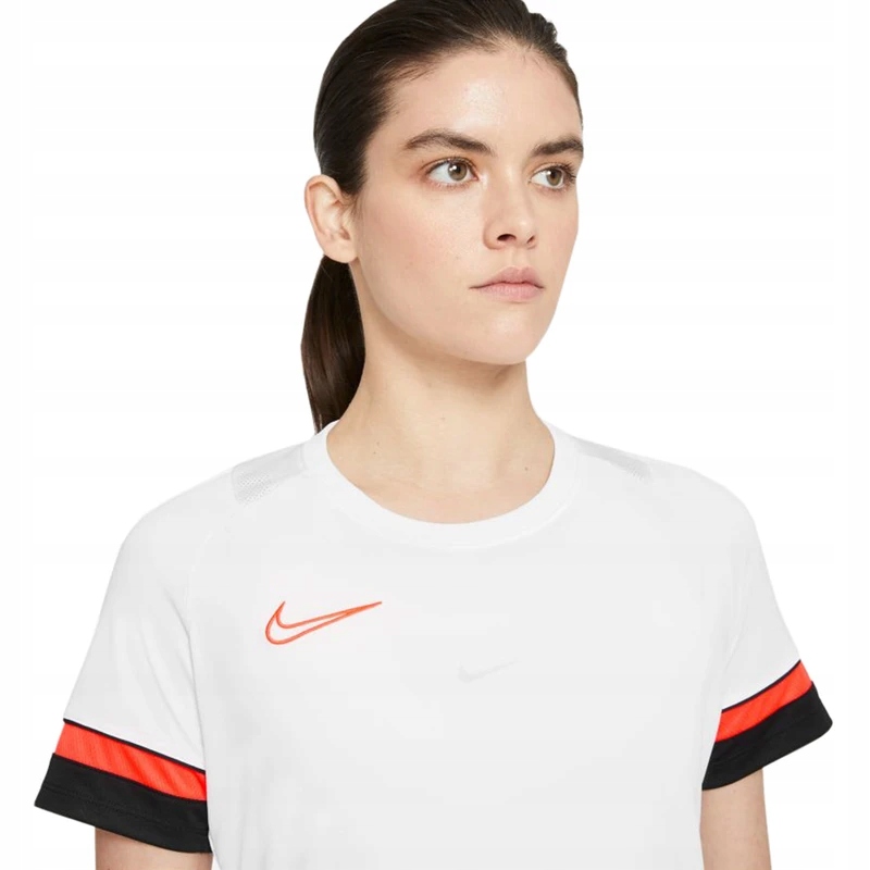 Koszulka damska Nike Df Academy 21 Top Ss biała CV2627 101 >Koszulka dla kobiet Nike sprawdzi się podczas treningów. Standardowy krój. Techniczny materiał Dri-FIT odprowadza wilgoć. Jest lekki, gładki i nie przywiera do ciała. Panele wentylacyjne z siateczki, wszyte po bokach i z tyłu. Standardowy krój nie ogranicza mobilności. >Materiał: 100% poliester z recyklingu >