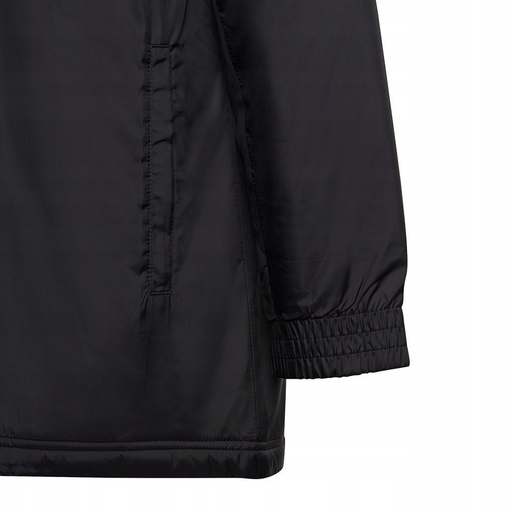 Kurtka dla dzieci adidas została stworzona z myślą o odpoczynku za linią boczną boiska. Rozpinany model o regularnym kroju. Nieodpinany kaptur. Kieszenie boczne. Rękawy wykończone ściągaczami. Klapa przeciwsztormowa na zatrzaski. Ocieplenie pochodzące częściowo z recyklingu.
