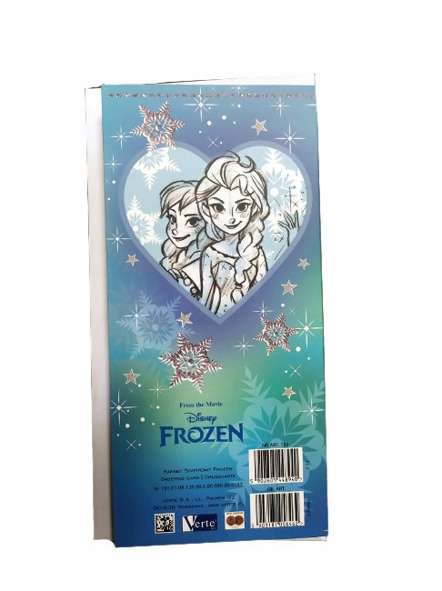 Kartka okolicznościowa z wizerunkami bohaterek bajki Frozen.