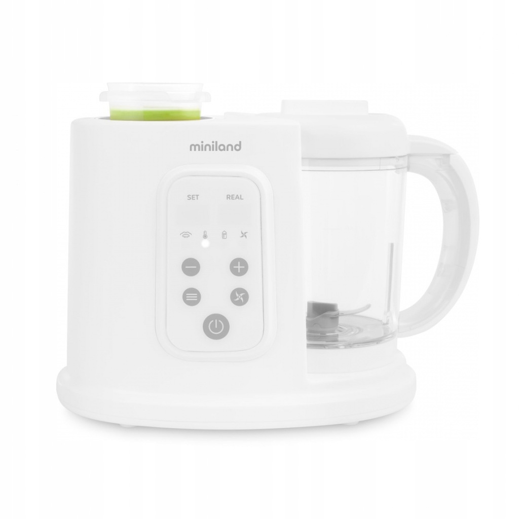 Wielofunkcyjny robot kuchenny 6 w 1, który zapewni sprawne i zdrowe przygotowywanie posiłków dla najmłodszych.Do urządzenia dołączona jest książka kucharska z różnymi przepisami, która pozwoli wykorzystać robota do tworzenia pysznych i zdrowych posiłków Pobrać ją można z aplikacji eMyBaby?.Najważniejsze cechy:- sterylizuje- gotuje na parze- mieli- idealny do mleka matki- automatyczne wyłączanie- równomiernie podgrzewa- rozmraża- wyświetlacz cyfrowy- utrzymuje temperaturę- bardzo łatwy w użytkowaniu6 funkcji w jednym robocie kuchennym- podgrzewa butelki i słoiczki- sterylizuje butelki i akcesoria- gotuje jedzenie na parze- utrzymuje temperaturę płynów w butelkach i słoiczkach- miażdży jedzenie- rozmraża butelki i słoiczkiIdealne kruszenieRobot zawiera 2 podwójne ostrza umieszczone na różnych wysokościach, z serią perforacji, w celu uzyskania idealnego rozdrobnienia pokarmu i pożądanej tekstury żywności.Idealny do podgrzewania naturalnego mleka matkiRównomierne rozmrażanie i podgrzewanie, podczas których nie traci się żadnych właściwości mleka matki, zachowując wszystkie witaminy i składniki odżywcze po osiągnięciu wybranej temperatury.Skuteczna sterylizacjaNajbardziej skutecznym i naturalnym sposobem sterylizacji jest parowanie W przypadku tego urządzenia nie jest konieczne dołączanie jakiejkolwiek substancji chemicznej do sterylizacji.Zawsze wiemy, ile pozostało czasu sterylizacjiDzięki urządzeniu możesz wybrać preferowany czas podgrzewania lub sterylizacji i dzięki wyświetlaczowi zobaczyć, ile czasu pozostało do końca procesu.Łatwy demontaż i czyszczenieWszystkie elementy urządzenia można łatwo i bez wysiłku usunąć w celu prawidłowego i łatwego czyszczenia.