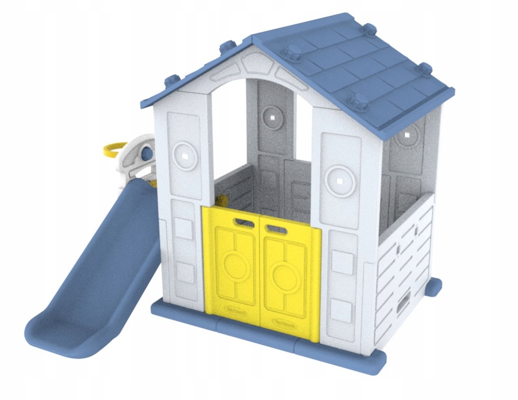 ND28_16885_ZOG_CHD-501B Domek Ogrodowy 3w1 dla dzieci Niebieski Dach + Zjezdzalnia + Koszykowka