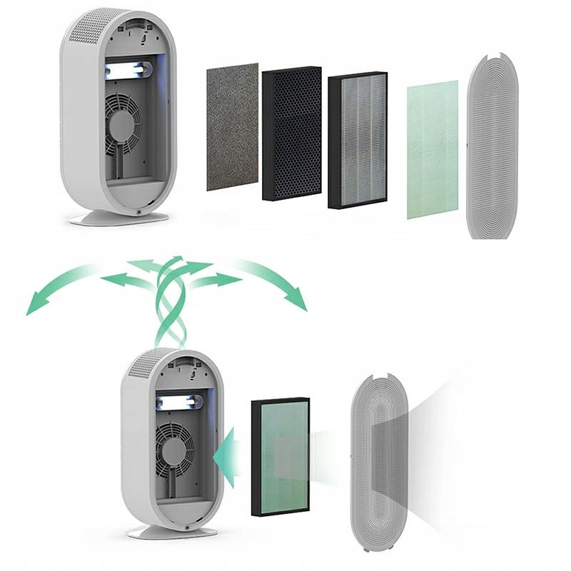 6-stopniowa filtracja: antybakteryjna, HEPA, węglowa, katalityczna, UV, jonizacyjna.