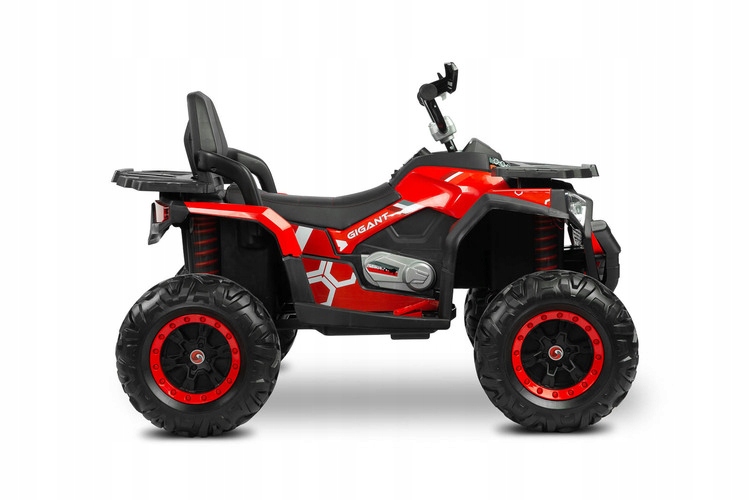 GIGANT to quad marki TOYZ, który roznieci w dziecku pasję do jazdy terenowej. Wygodę czterokołowca zapewnia obszerne siedzisko z ekoskóry. 4 mocne silniki 45 W i duże koła z wysokiej jakości pianki EVA sprawiają, że GIGANT bez problemu poradzi sobie z nierównym terenem. Pojazd posiada 2 prędkości jazdy oraz możliwość jazdy do tyłu. Panel multimedialny z wejściami USB i Bluetooth pozwoli na odtwarzanie ulubionych melodii podczas zabawy. GIGANT może być sterowany przez rodzica za pomocą pilota zdalnego sterowania. Najważniejsze cechy: