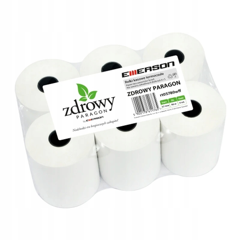 ROLKI TERMICZNE - ZDROWY PARAGONProdukowane z papieru termoczułego o gramaturze 50 ± 6 g/m², z gwarancją trwałości nadruku do 6 lat.Z dbałości o jakość naszych wyrobów oraz bezpieczeństwo i komfort pracy użytkowników, rolki firmy Emerson produkowane są z surowca niezawierającego szkodliwych Bisfenoli A i S.Wszystkie rodzaje rolek mogą być dostosowane do indywidualnych zamówień w zakresie: długość i szerokość nawoju, średnica gilzy, odwrotne nawinięcie papieru, możliwość zadrukowania wg Indywidualnych potrzeb klientaPakowane są w folię termokurczliwą zapewniającą wysoką estetykę i trwałość produktu.