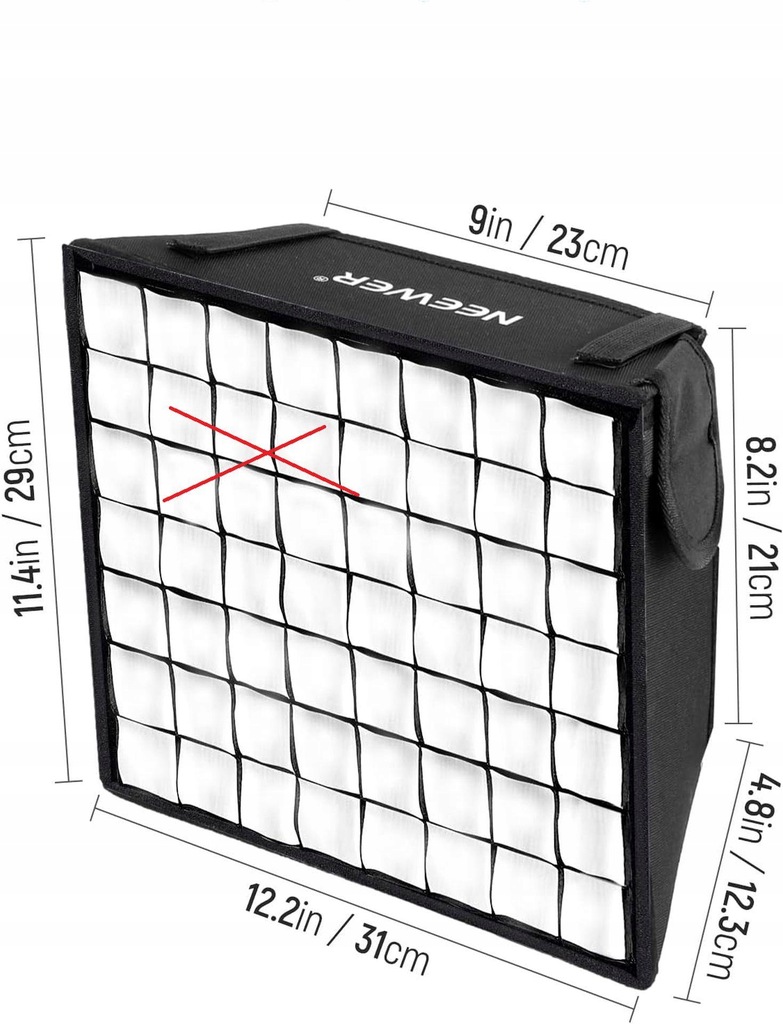 【Kwadratowa siatka o strukturze plastra miodu】 Praktyczny modyfikator światła zapewniający bardziej zorientowane oświetlenie. Siatka o strukturze plastra miodu może dodać dramatyczne efekty do portretów i innych stylów fotografii