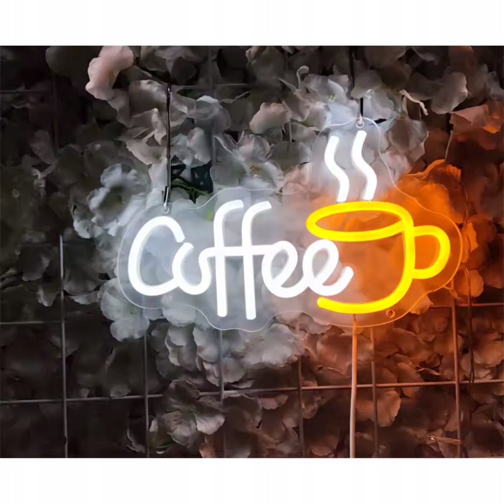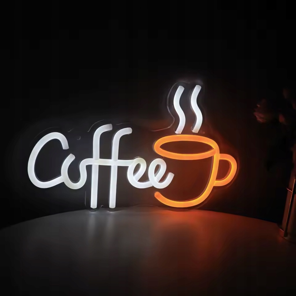 Neon LED KAWA z filiżanką – dekoracja do pokoju i kawiarni