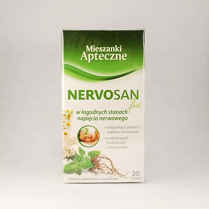 Substancje czynne: korzeń kozłka (Valerianae radix), ziele krwawnika (Millefolii herba), lić mięty pieprzowej (Menthae piperitae folium), lić melisy (Melissae herba), kwiat rumianku (Chamomillae anthodium). 1 saszetka zawiera 0,8 g korzenia kozłka (Valerianae radix), 0,4 g ziela krwawnika (Millefolii herba), 0,3 g licia mięty pieprzowej (Menthae piperitae folium), 0,3 g licia melisy (Melissae herba), 0,2 g kwiatu rumianku (Chamomillae anthodium)