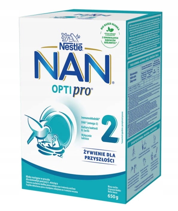 Mleko następne w proszku Nestlé NAN OPTIpro® 2 jest odpowiednie dla zdrowych niemowląt, które ukończyły 6. miesiąc życia. Po odpowiedni przygotowaniu służą jako płynny element diety w czasie, gdy maluch jest odstawiany od piersi. Może być również stosowane w karmieniu łączonym (dokarmianie), jeżeli zaistnieje taka potrzeba.