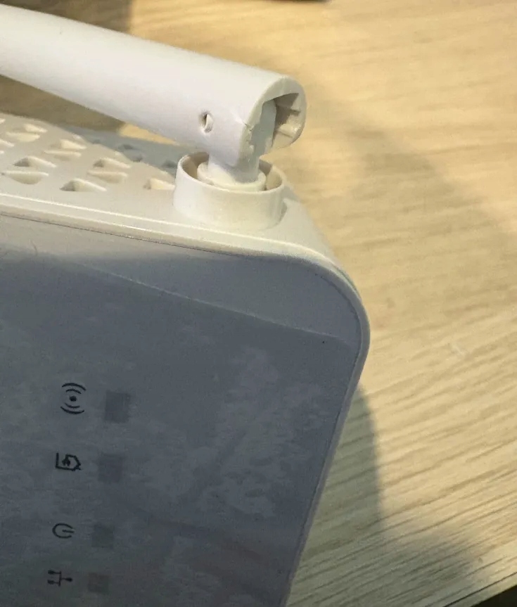 Jedna z anten ma delikatnie podłamany plastik, przez to jest jej ciężko utrzymać się w ustawionej pozycji.