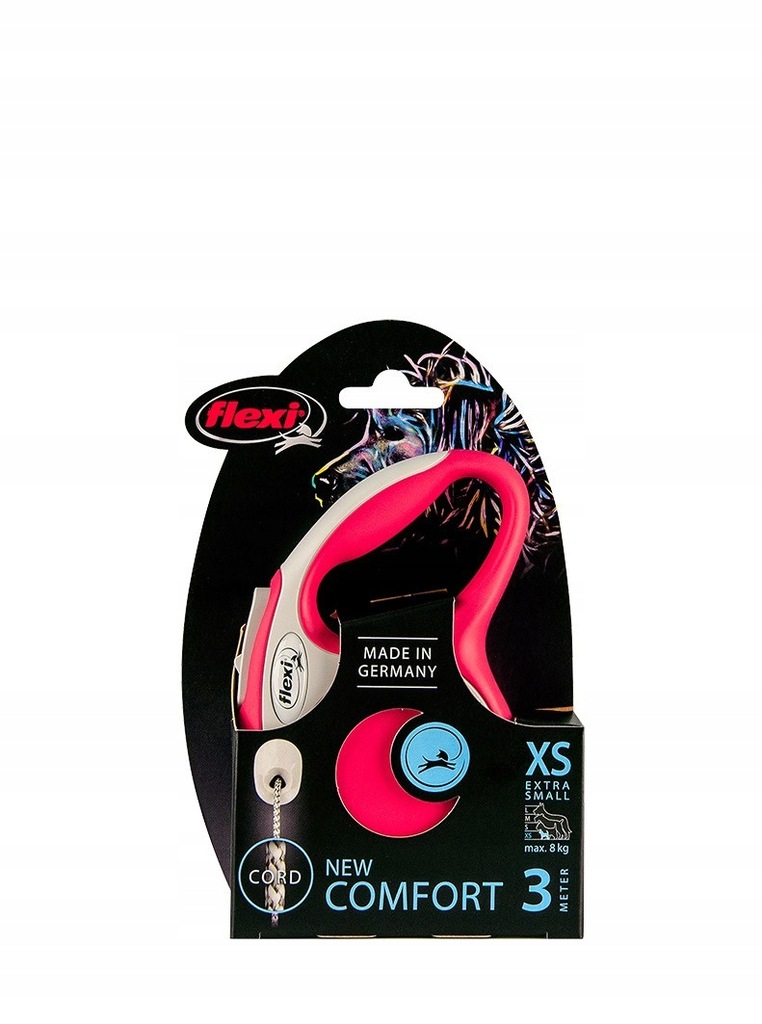 Nowoczesne, żywe kolory w połączeniu z jasną szarością są radosnym akcentem podczas spacerów z psem. Ergonomiczny i regulowany uchwyt (od rozmiaru M) o przyjemnym dotyku jest niezwykle wygodny. Sprawdzona technologia flexi zapewnia niezawodną i komfortową obsługę smyczy. Flexi New COMFORT pozwala psu na swobodne poruszanie się przy jednoczesnej jego kontroli. New Comfort jest dostępny w 4 rozmiarach, w 5 nowych kolorach. Od rozmiaru S, Flexi New COMFORT możesz opcjonalnie rozszerzyć o praktyczne akcesoria. System oświetlenia Flexi LED z przednią i tylną lampką zwiększa bezpieczeństwo. Pojemnik Flexi Multi Box przymocujesz do smyczy za pomocą jednego kliknięcia, dzięki czemu smakołyki lub woreczki zawsze masz pod ręką.