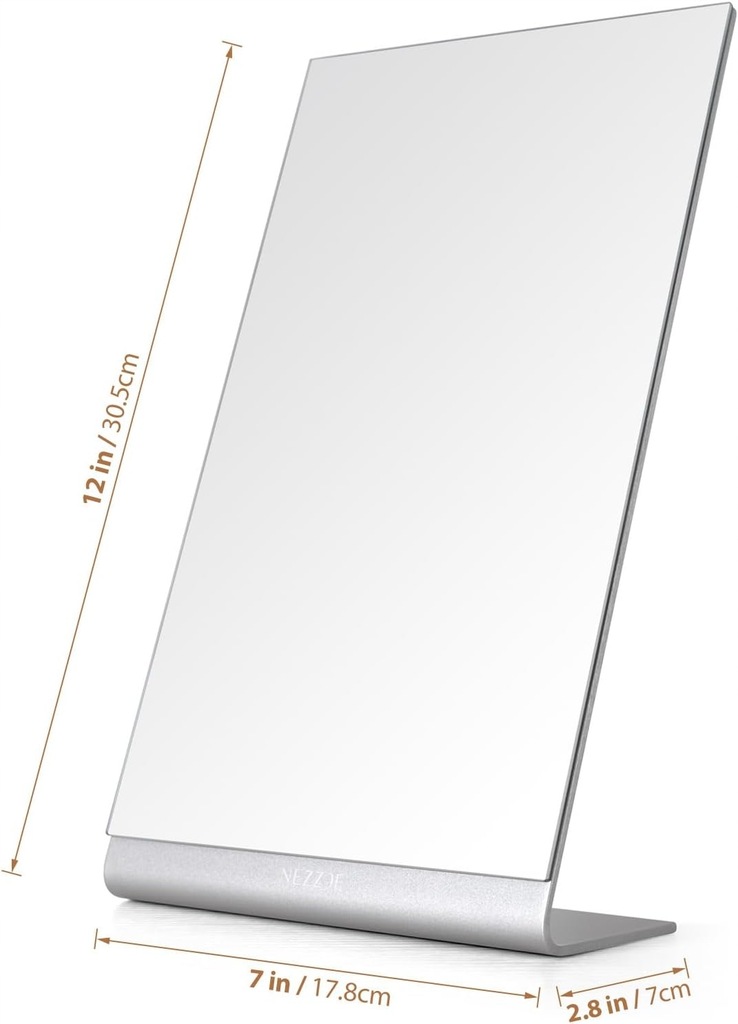 Dzięki kompaktowym wymiarom (30,5 cm x 17,8 cm x 7 cm) idealnie nadaje się na toaletkę, biurko czy półkę w łazience. Srebrny kolor dodaje elegancji, a solidna konstrukcja zapewnia trwałość na lata. Wybierz lustro Nezzoe i ciesz się idealnym odbiciem każdego dnia
