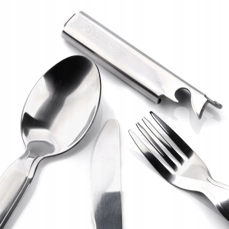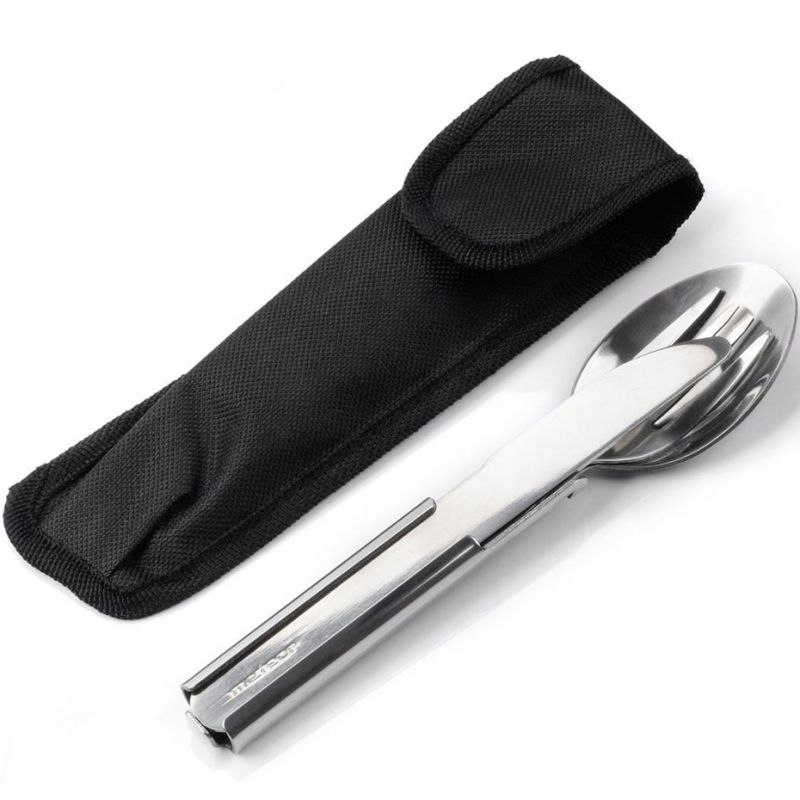 - Niezbędnik zawiera: łyżkę, nóż, widelec, otwieracz oraz nylonowy pokrowiec zapinany na rzep.