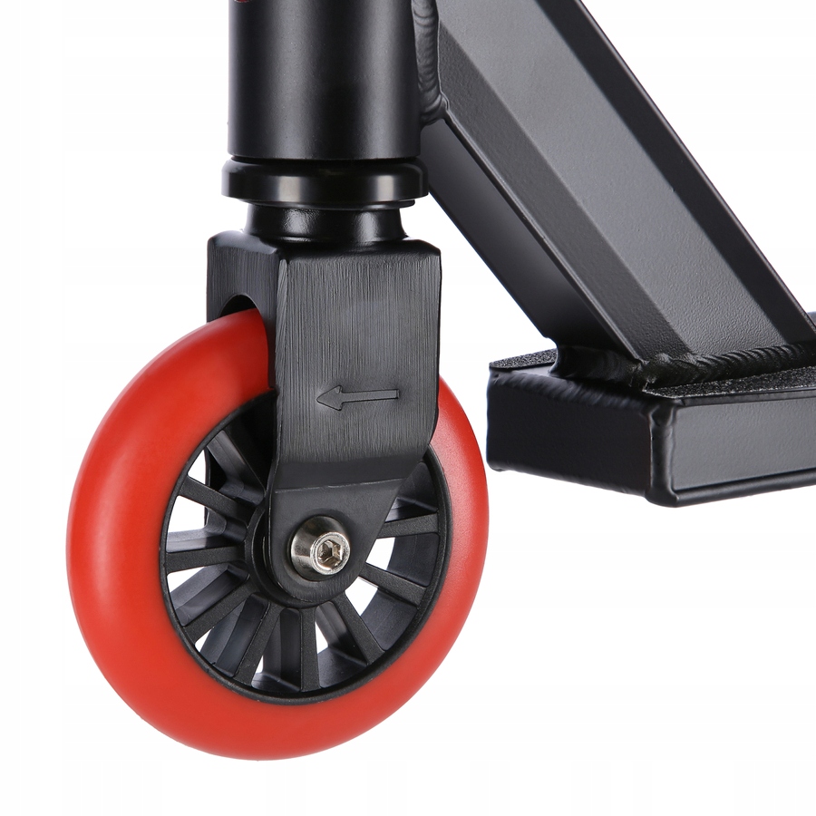 Hulajnoga stunt jest pozbawiona mechanizmu składania konstrukcji czy też systemu regulacji wysokości kierownicy – tego typu rozwiązania mogłyby osłabić całą konstrukcję, co oczywiście nie jest pożądane w przypadku sprzętu wyczynowego, gdzie wytrzymałość to podstawa. W trakcie wykonywania trików sprzęt spotyka się z bardzo dużym obciążeniem.