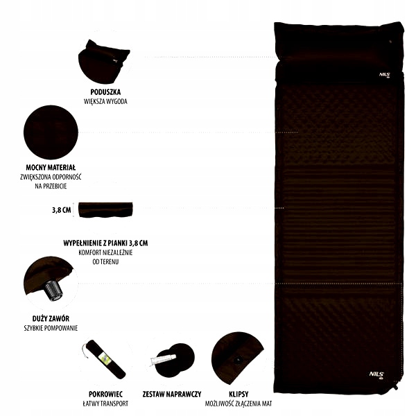 ⚡NC4001 CZARNA MATA SAMOPOMPUJĄCA Z PODUSZKĄ NILS CAMP⚡