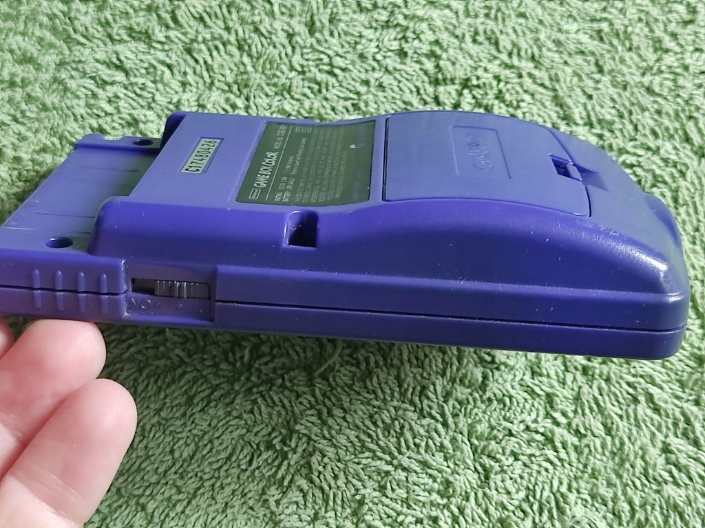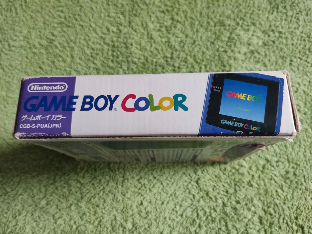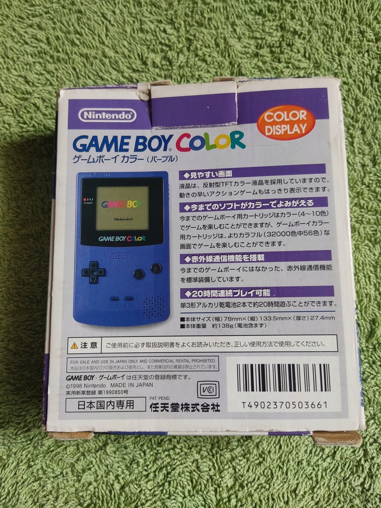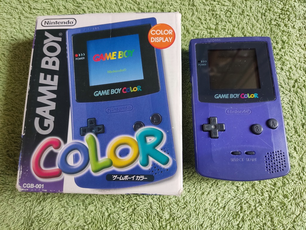 Konsola Game Boy Color Grape wraz z pudełkiem.