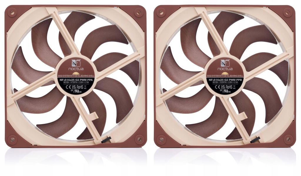 Noctua NF-A14x25 G2 PWM Sx2-PP, Dwuwentylatorowy Zestaw do Stosowania w Układzie Sąsiadującym oraz Push-Pull (Brązowy)