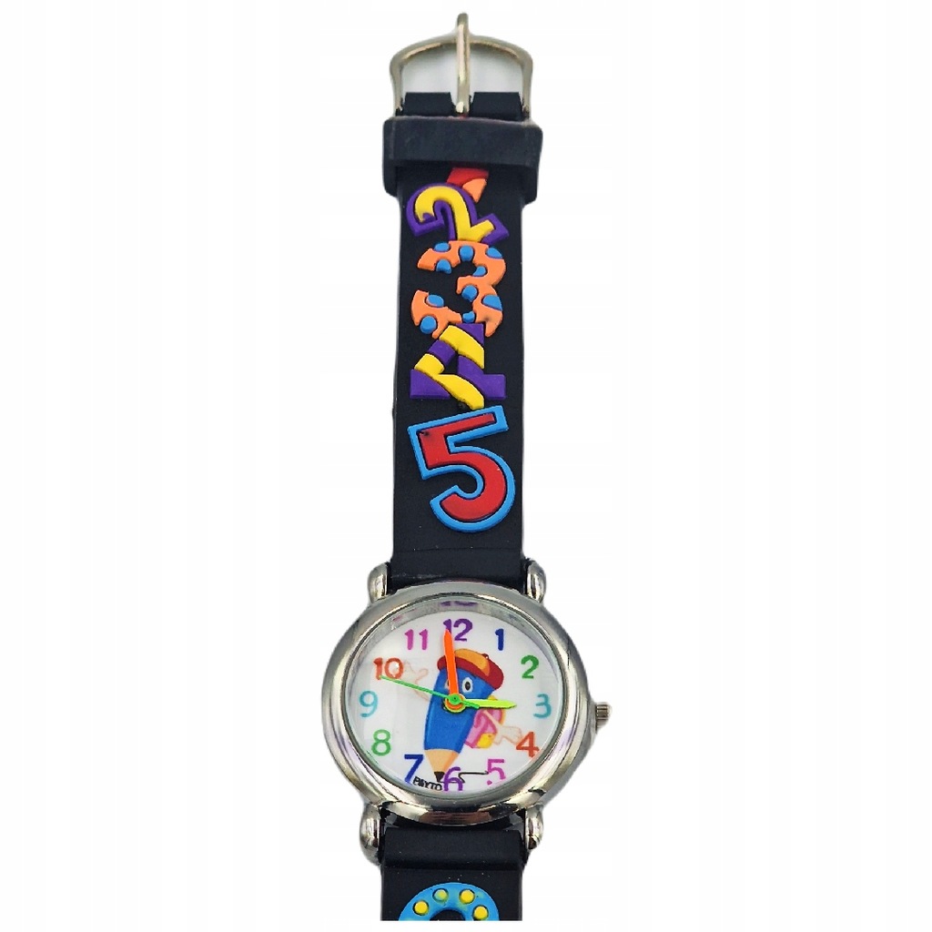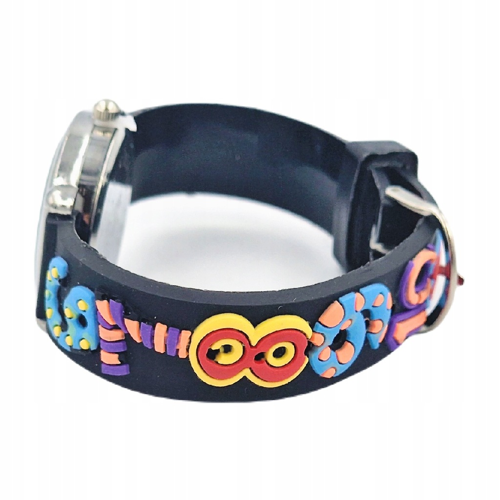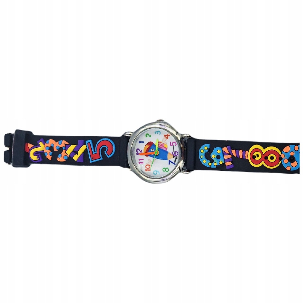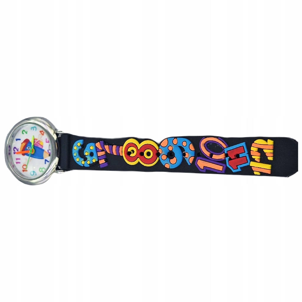 Klasyczny zegarek dla dzieci, dzięki któremu już zawsze będziecie na czas i nigdy się nie spóźnicie. Posiada wypukłe, kolorowe wzory na gumowo-silikonowym pasku oraz wiele dziurek umożliwiających idealne dopasowanie zegarka do każdej ręki. Bardzo dobrze sprawdzi się jako pierwszy zegarek dla dziecka do nauki odczytywania czasu, dzięki kolorowym wskazówkom i czytelnej tarczy.