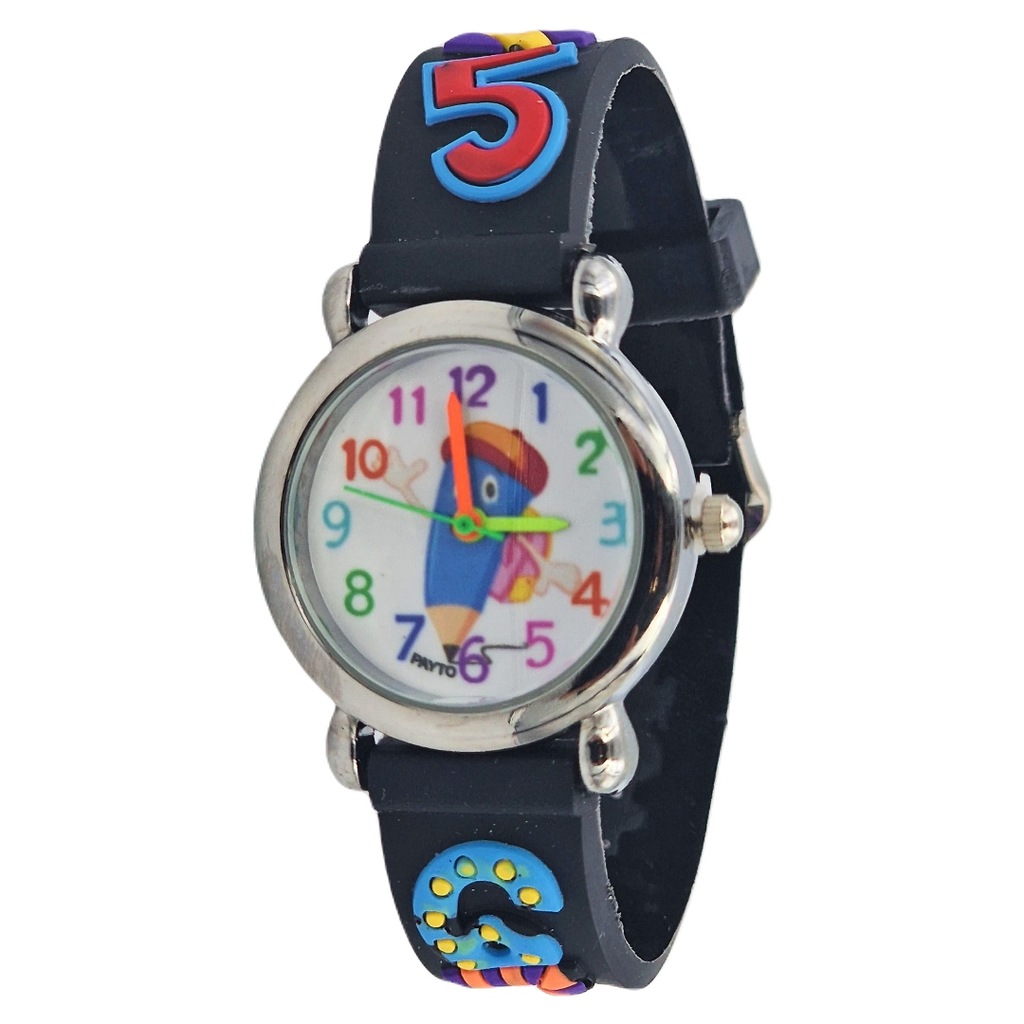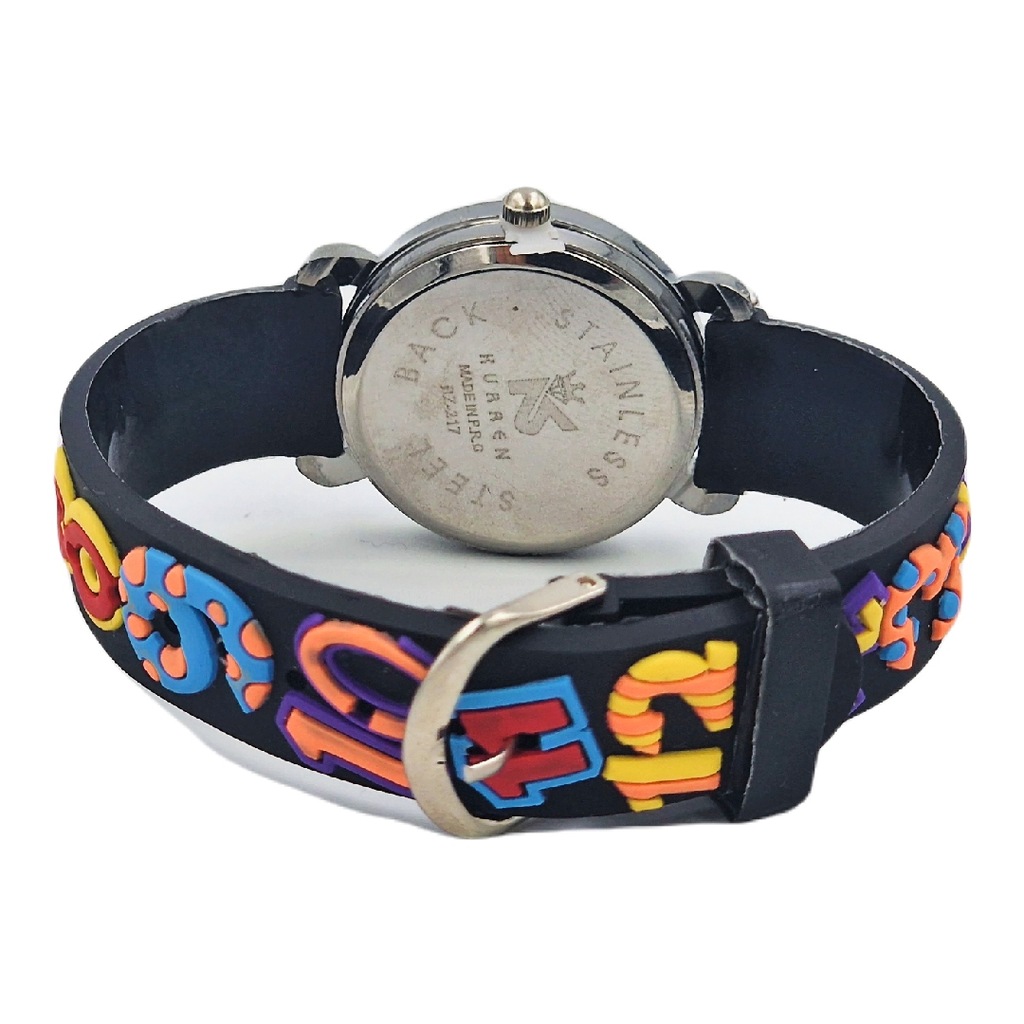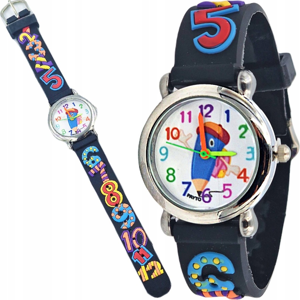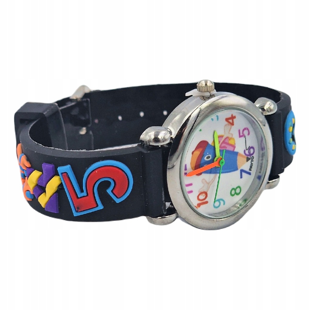Klasyczny zegarek dla dzieci, dzięki któremu już zawsze będziecie na czas i nigdy się nie spóźnicie. Posiada wypukłe, kolorowe wzory na gumowo-silikonowym pasku oraz wiele dziurek umożliwiających idealne dopasowanie zegarka do każdej ręki. Bardzo dobrze sprawdzi się jako pierwszy zegarek dla dziecka do nauki odczytywania czasu, dzięki kolorowym wskazówkom i czytelnej tarczy.