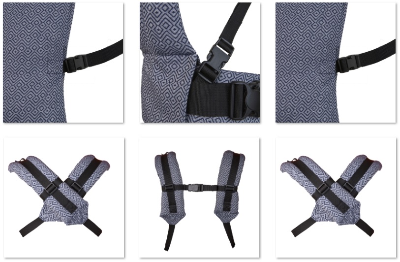 - wygodne i miękkie szelki odciążają kręgosłup rodzica oraz zwiększają komfort noszenia. W zależności od preferencji istnieje możliwość skrzyżowania szelek na plecach
