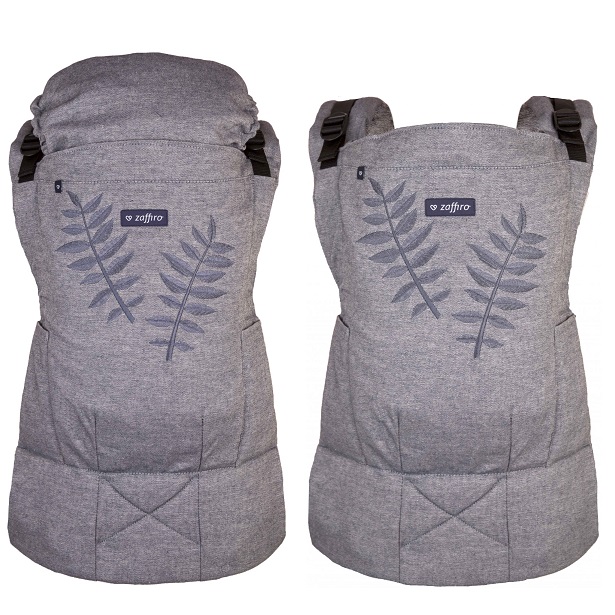 - opcje noszenia: na brzuchu, na plecach (nie zaleca się noszenia na plecach dzieci poniżej 12. miesiąca życia lub do momentu, gdy będą miały na tyle mocne mięśnie, aby móc samodzielnie utrzymywać pozycję siedzącą)