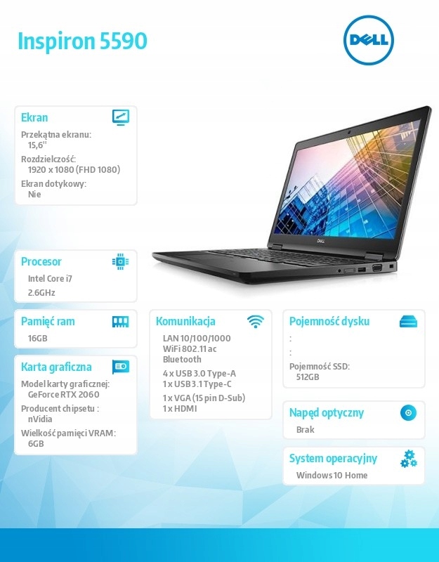 - Pozostałe informacje o procesorze: Intel Core i7-9750H