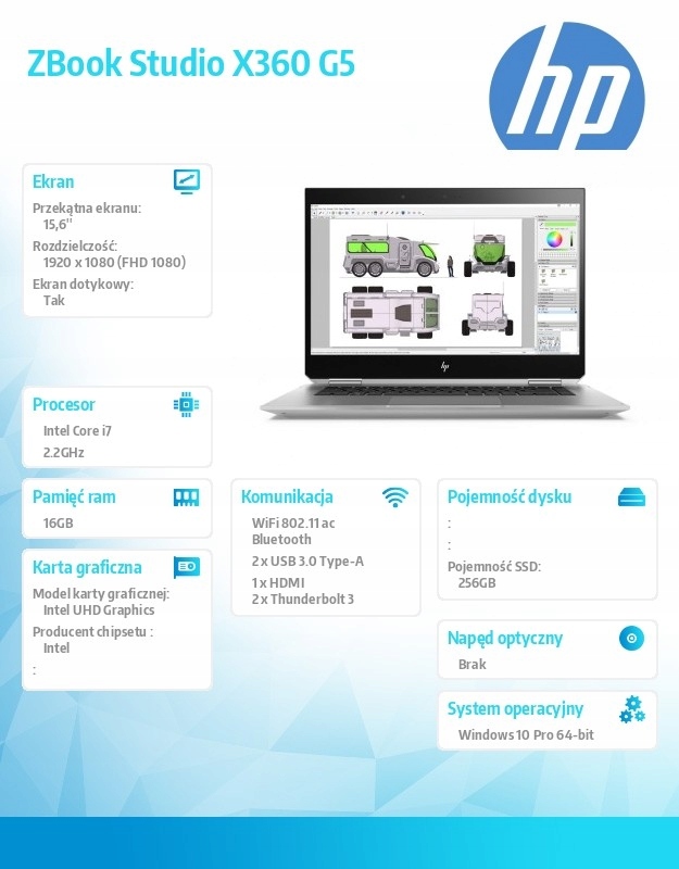 Notebook ZBook Studio X360 G5 i7-8750H/256/16G 6KP03EA