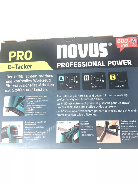 Uniwersalny zszywacz elektryczny do zszywek wąskich.Zabezpieczenie przed omyłkowym strzałem - strzał możliwy wyłącznie po dociśnięciu zszywacza do powierzchniBezpieczny system ładowania zszywek od spoduMiarka z ogranicznikiem dla wbijania zszywek w równych odległościach od siebieRękojeść pokryta gumową strukturą dla wygodnego i stabilnego chwytuNa Zszywki dł. 6-14mm,gwoździe 16mm
