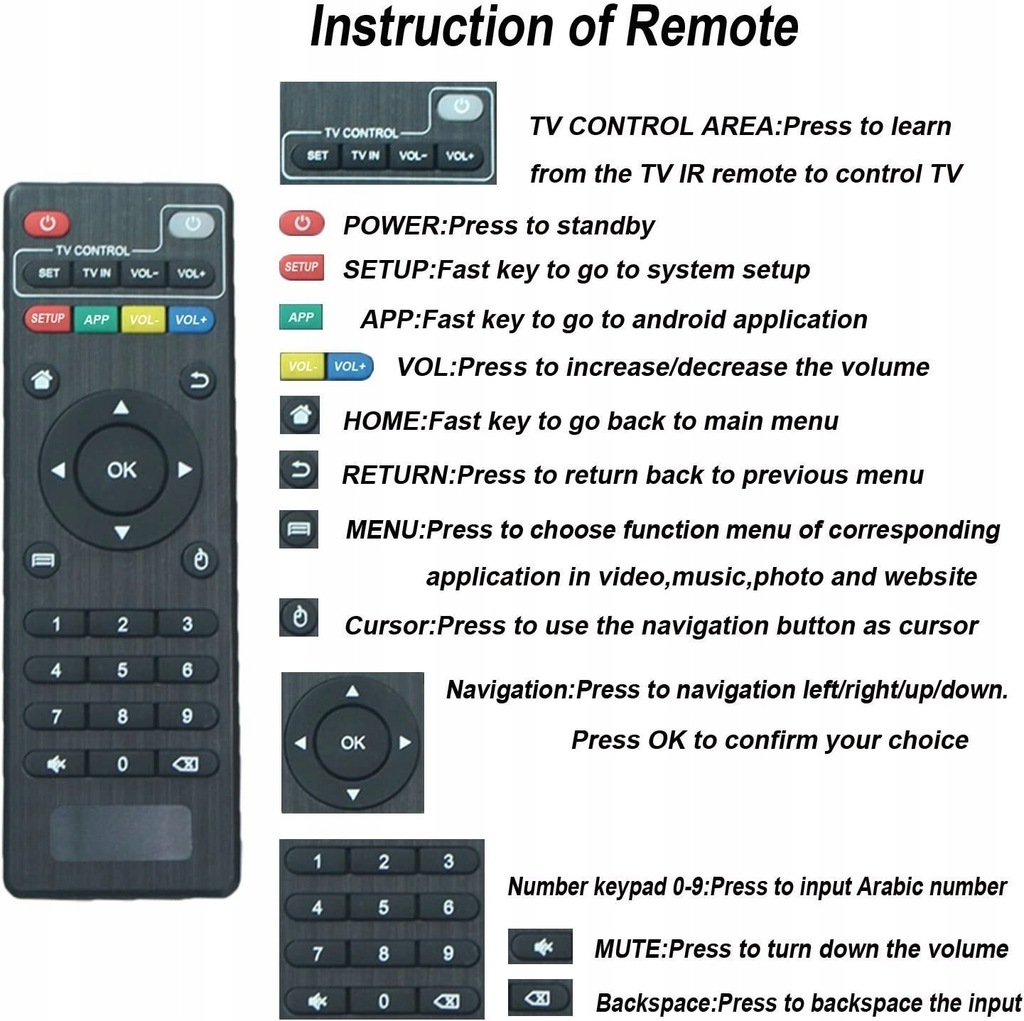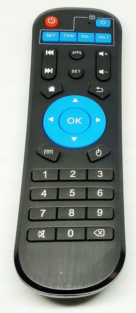 Prosty i uniwersalny pilot zdalnego sterownia na podczerwień, stosowany do obsługi android BOX’ów. Nie ma potrzeby instalacji dodatkowego oprogramowania w celu jego użytkowania. Wystarczy włożyć baterie, aby pilot w pełni zaczął działać.