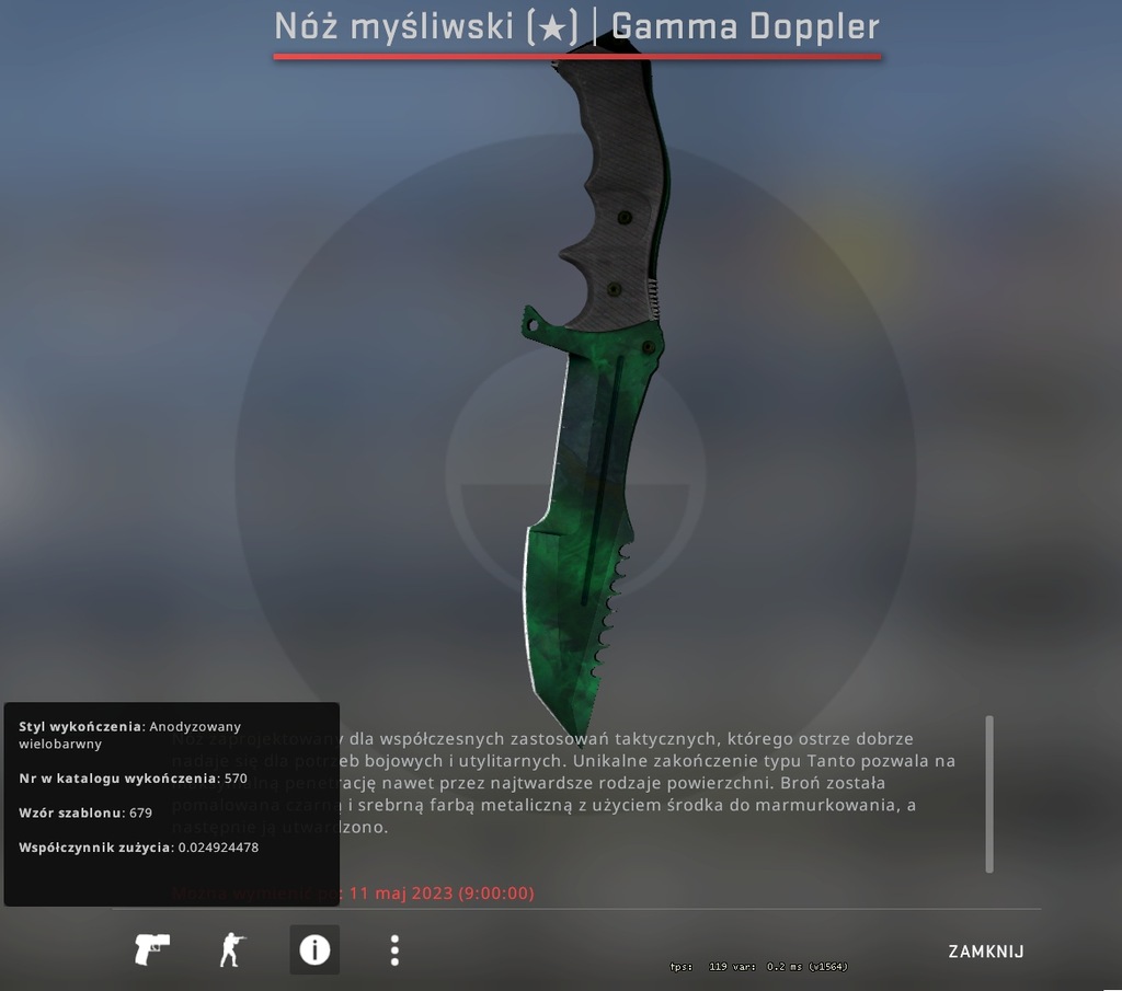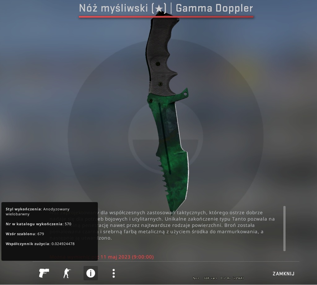 Witam. Sprzedam skin do noża w CS GO mianowicie jak w tytule jest to Huntsman Knife Gamma Doppler Phase 2 FACTORY NEW!! Skin wysyłam na STEAM w momencie gdy wpłynie mi przelew na konto. Pozdrawiam.