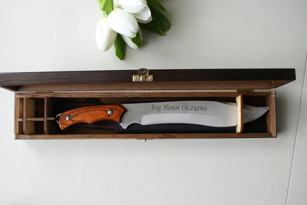 Oferuje elegancki nóż Myśliwski z Twoim grawerem w opakowaniu