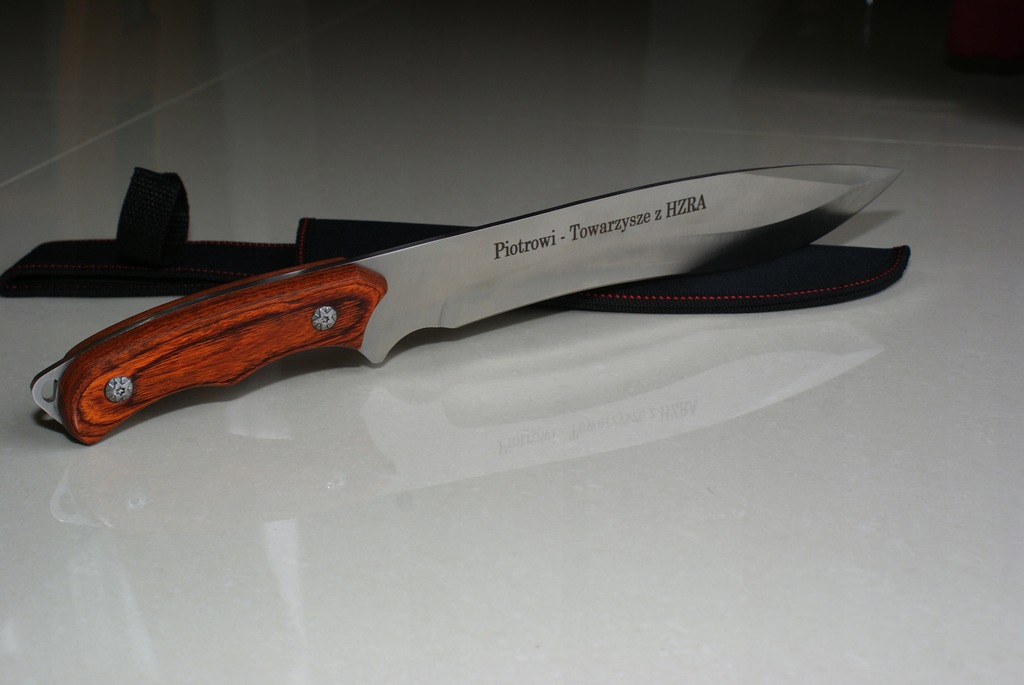 Grawer ,według Twoich wytycznych , wykonamy na stalowej części noża i na opakowaniu,