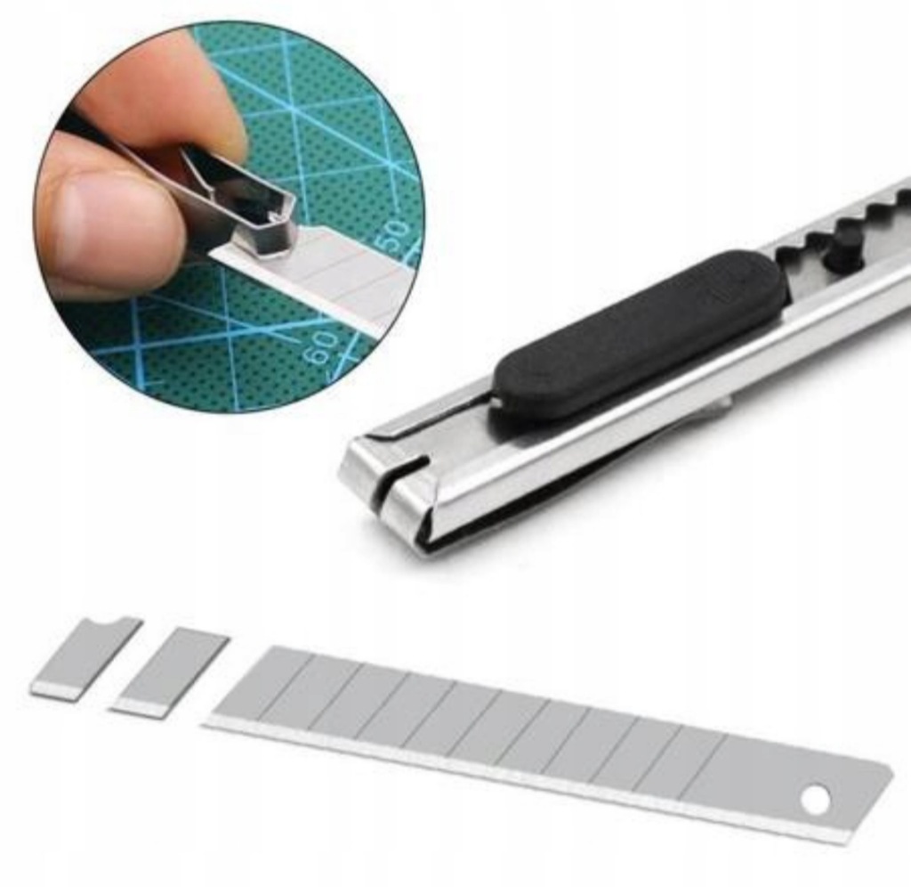 NÓŻ NOŻYK DO TAPET WYKŁADZIN METALOWY UNIWERSALNY WĄSKI 18mm OSTRZE ŁAMANE