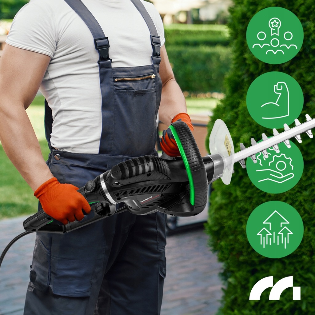 Nożyce elektryczne MasterHedge-PRO620W to niezastąpione narzędzie dla każdego, kto ceni piękno zadbanego ogrodu i komfort pracy. Dzięki dużej mocy, precyzyjnym ostrzom i ergonomicznemu uchwytowi szybko i bez wysiłku przytniesz nawet duże żywopłoty i krzewy.