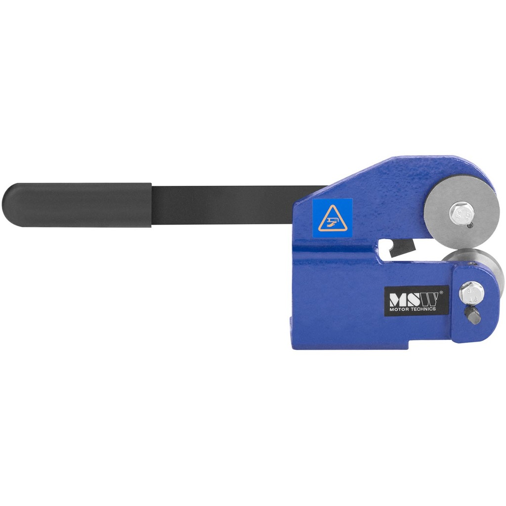 Nożyce krążkowe do blachy marki MSW pozwalają ciąć w linii prostej oraz po łuku elementy wykonane z blachy. Sprawdzą się w firmach budowlanych, warsztatach czy w fabrykach. 2 wysokiej jakości kółka tnące wykonane zostały z trwałej stali, odpornej na ścieranie. Pozwalają na wykonanie precyzyjnego cięcia materiału o maksymalnej grubości 1,5 mm. Mechanizm z zapadką sprawia, że arkusz nie przesunie się niekontrolowanie w czasie obróbki. Dźwignia z długim uchwytem oraz gumowa antypoślizgowa osłona rączki umożliwiają wygodną pracę z urządzeniem. Otwory o średnicy 12 mm pozwalają przytwierdzić sprzęt do podłoża.