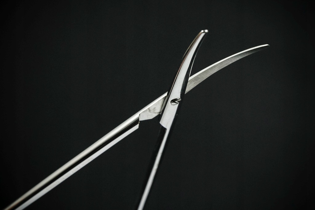 Nożyczki preparacyjne Metzenbaum 18 cm (10/32) Smukłe nożyczki preparacyjne typu Metzenbaum, zagięte. Długość 18 cm. Nożyczki są używane i noszą ślady użytkowania. Stan techniczny widoczny na zdjęciach.