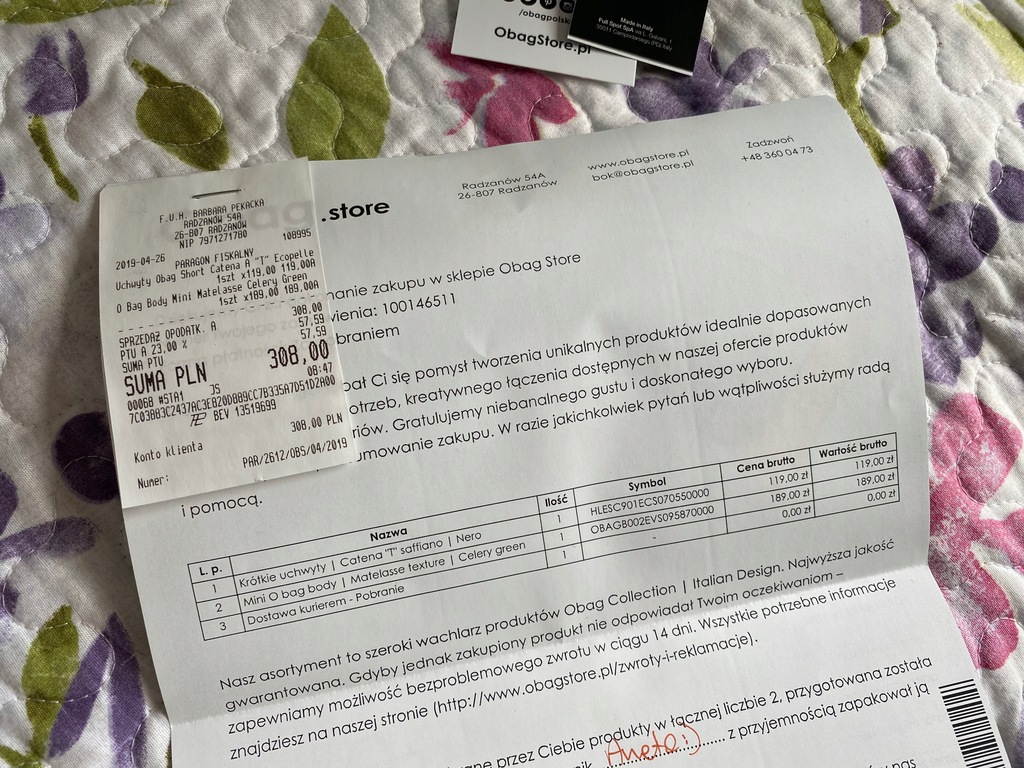 Z woreczkiem przeciwkurzowym i dowodem zakupu