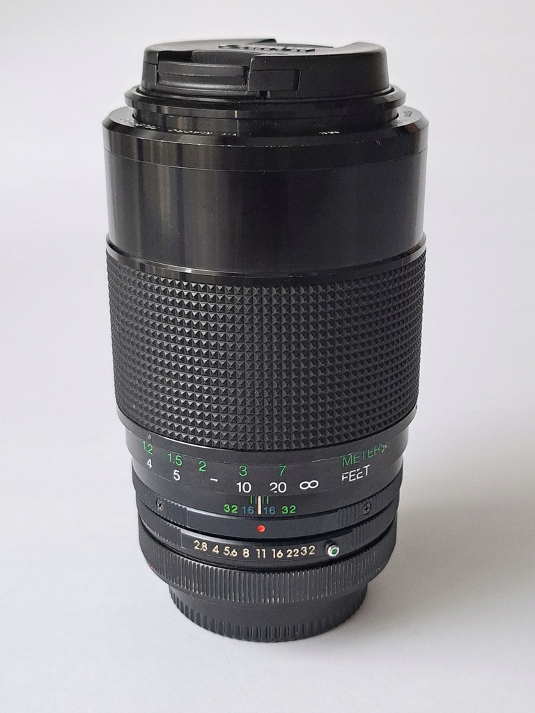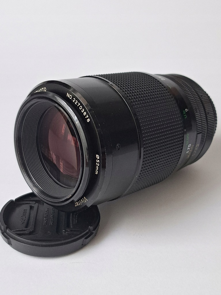 Stara dobra japońska szkoła, tylko szkło i metal! Stan bardzo ładny optyka super, drobne otarcia farby na zewnątrz. Pierścienie chodzą idealnie, przesłona czysta, sucha.