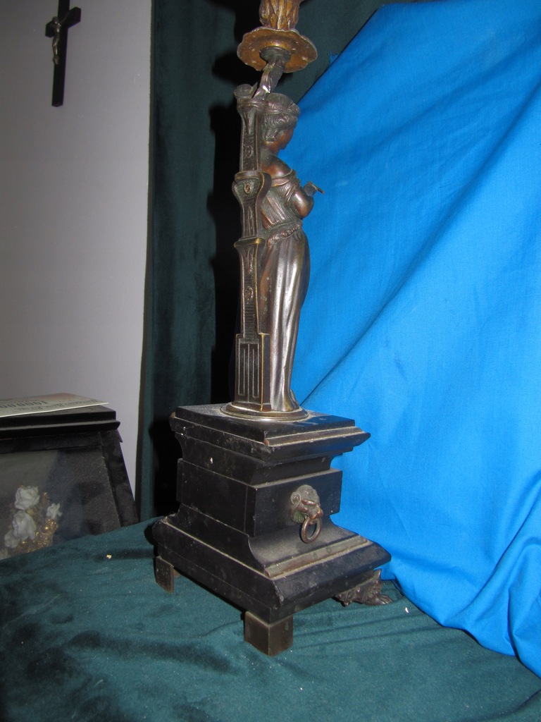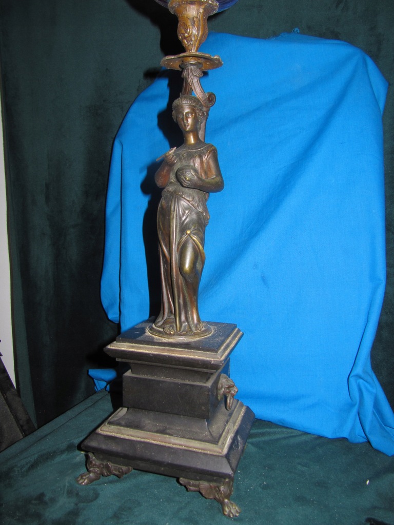 -OBNIŻKA--[@qa] Figuralna z Brazu Lampa Naftowa 85cm XIXw (15030713400)