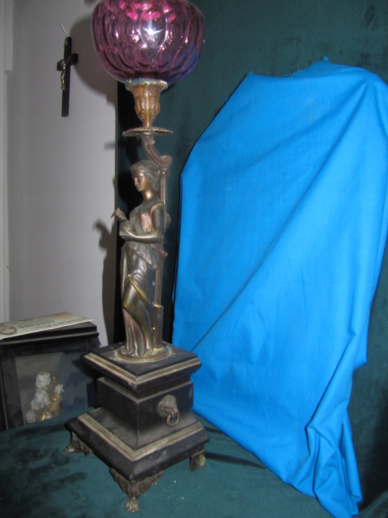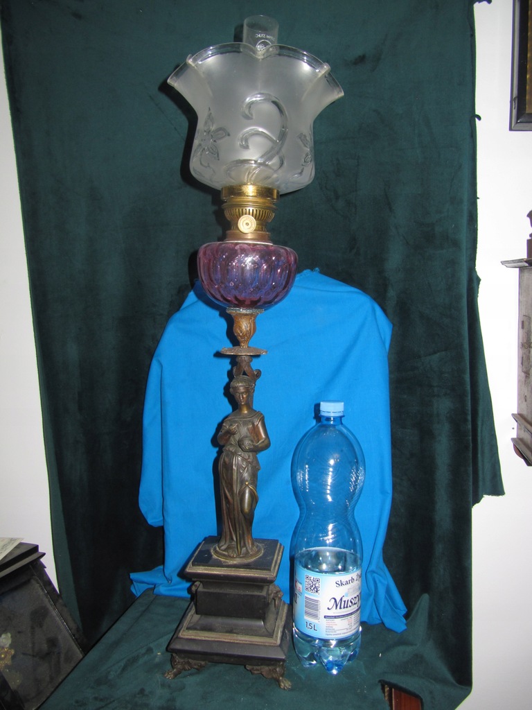--WYPRZEDAŻ---WRAZIE PYTAŃ--MOGĘ ZROBIĆ DOBRĄ CENĘ ---NA--KUP-TERAZ ---OKAZJA---OKAZJA------Sprzedaję z prywatnej kolekcji 100% Oryginalna przepiękną muzealną figuralna lampę naftową z konca XIXww oryginalna--z okresu unikat-wykonana z brazu figura jakiejs greckiej bogini podstawa z czarnego marmuru zdobiona glowami lwow zbiornik szklany różowy w lezki posiada piękny klosz w tulipan patrz na zdjecia -wysokość całkowita lampy to 85cm-podstawa 20 cm waga ok 12 klg brener 20-tka zachowana w oryginalnym i BDB--stanie -Lampa jest nie czyszczona posiada oryginalną patynę--- dla zaintresowanych podesle dodatkowe zdjecia-Cały urok tego przedmiotu najlepiej ukazują zdjęcia przedmiot kolekcjonerski jak i zarówno użytkowy MOGE WYSLAC ZA POBRANIEM W razie pytań ?---694--35--42--59--- Pytanie do sprzedajacego?---NIZEJ---
