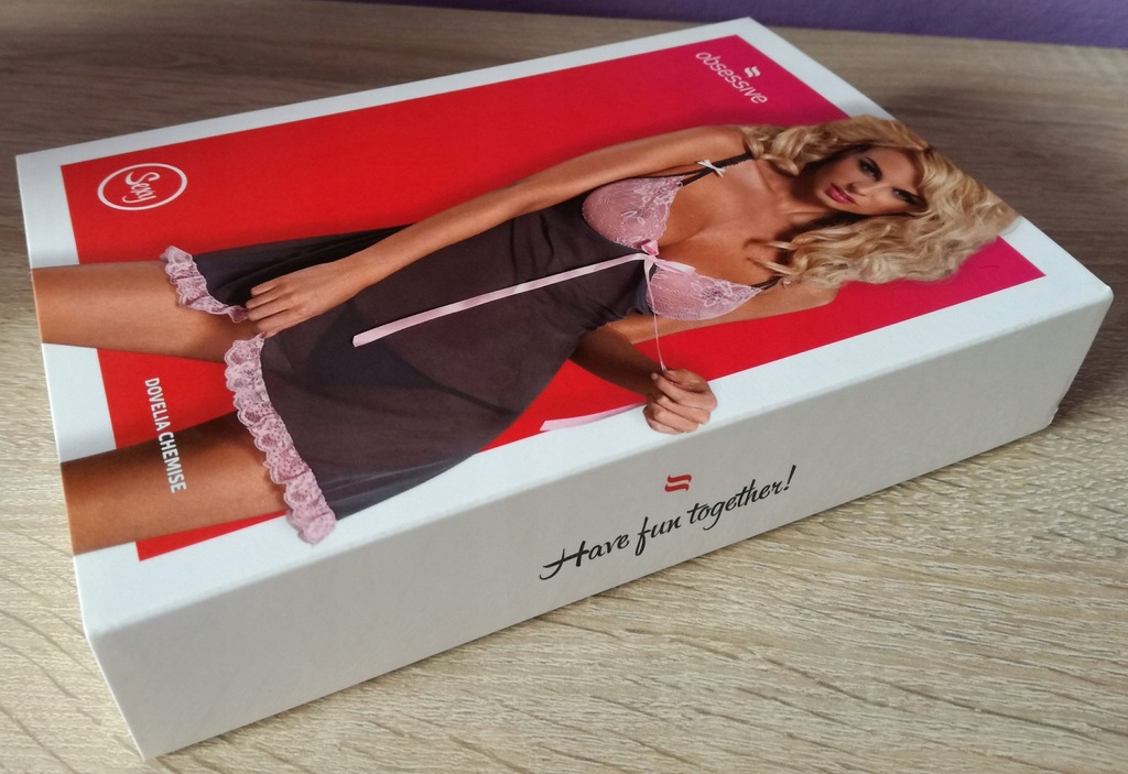Obsessive Dovelia Chemise szaro-różowa koszulka + stringi S/M