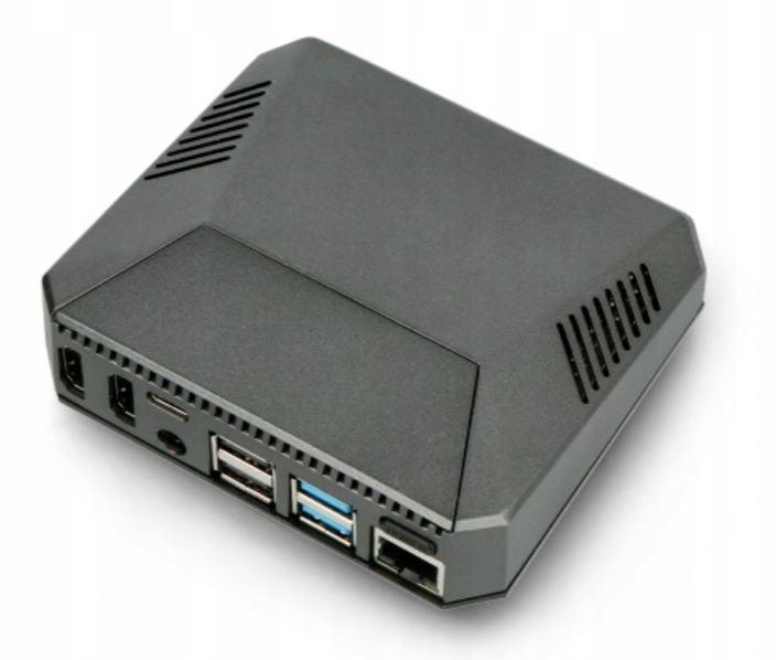 Wysokiej jakości obudowa gwarantująca poprawne chłodzenie układu Raspberry Pi 4 dzięki wbudowanemu wentylatorowi, otworom wentylacyjnym i specjalnym stykom cała obudowa pełni funkcje radiatora. Wszystkie porty wyprowadzone na przedni panel obudowy co gwarantuje swobodny dostęp.