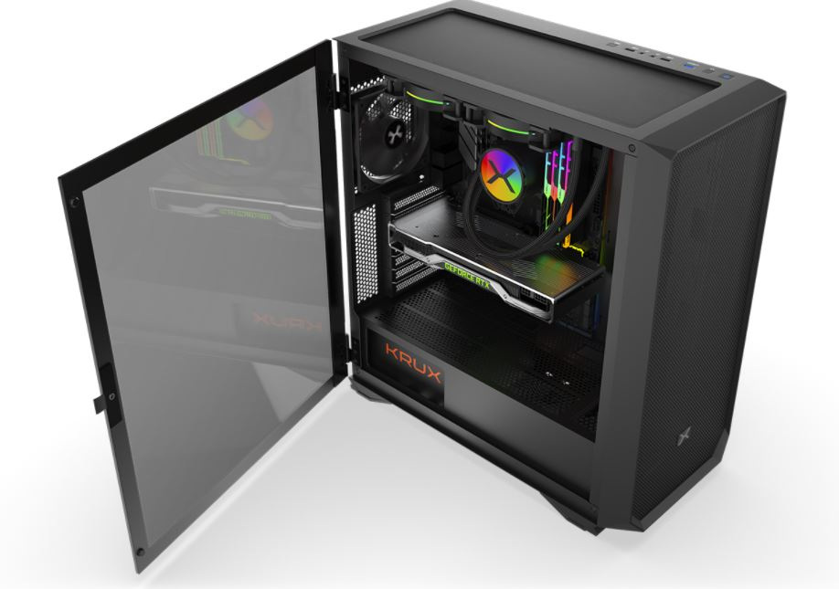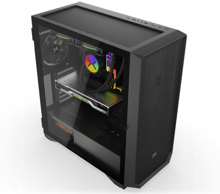 KRUX Thea to przewiewność i ochrona przed kurzem. Dobry przepływ powietrza zapewnia front wykonany prawie w 100% z meshu, wsparty wentylator 120 mm. Górny oraz dolny panel jest perforowany i zakryty filtrami na magnes, które chronią wnętrze przed kurzem oraz zapewniają odpowiednią dawkę powietrza, bardzo ważnego przy chłodzeniu cieczą.