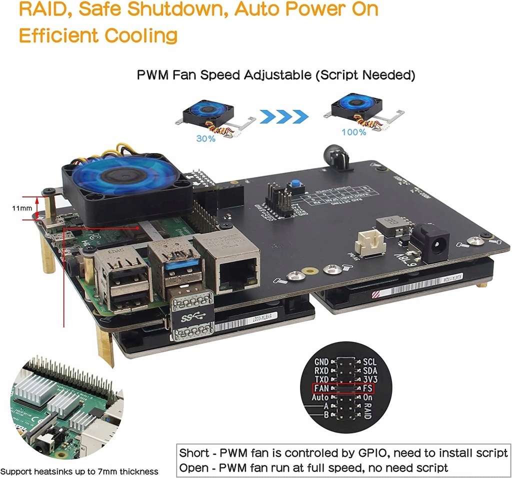【Funkcja】RAID, wentylator PWM, bezpieczne wyłączanie, automatyczne włączanie