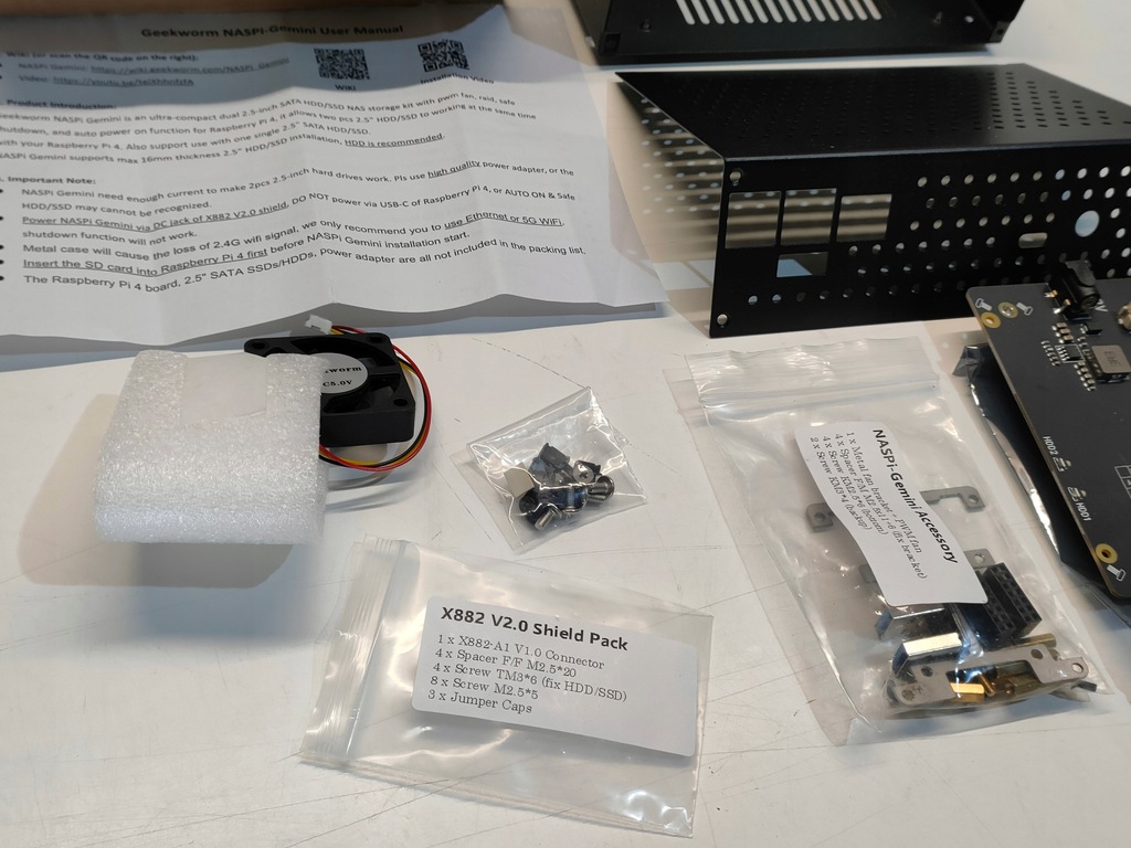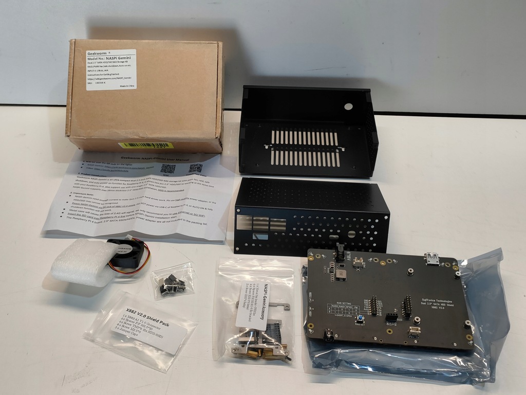 Geekworm NASPi Gemini 2.5 V2.0 Dual 2.5'' SATA HDD/SSD Zestaw obudów NAS z wentylatorem PWM, RAID, bezpiecznym wyłączaniem i automatycznym włączaniem dla Raspberry Pi 4 Model B (bez Pi 4, HDD i SSD)