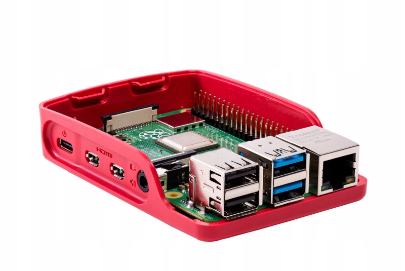 Obudowa do komputerów Raspberry Pi 4 model B, w kolorze biało-czerwonym, wykonana z tworzywa sztucznego. Dzięki zdejmowanej górnej części obudowy pozwala na łatwy dostęp do portów: GPIO, interfejsu wyświetlacza oraz kamery.Jest to oryginalna obudowa producenta Raspberry Pi.Wymiary: 96 x 70 x 30 mm