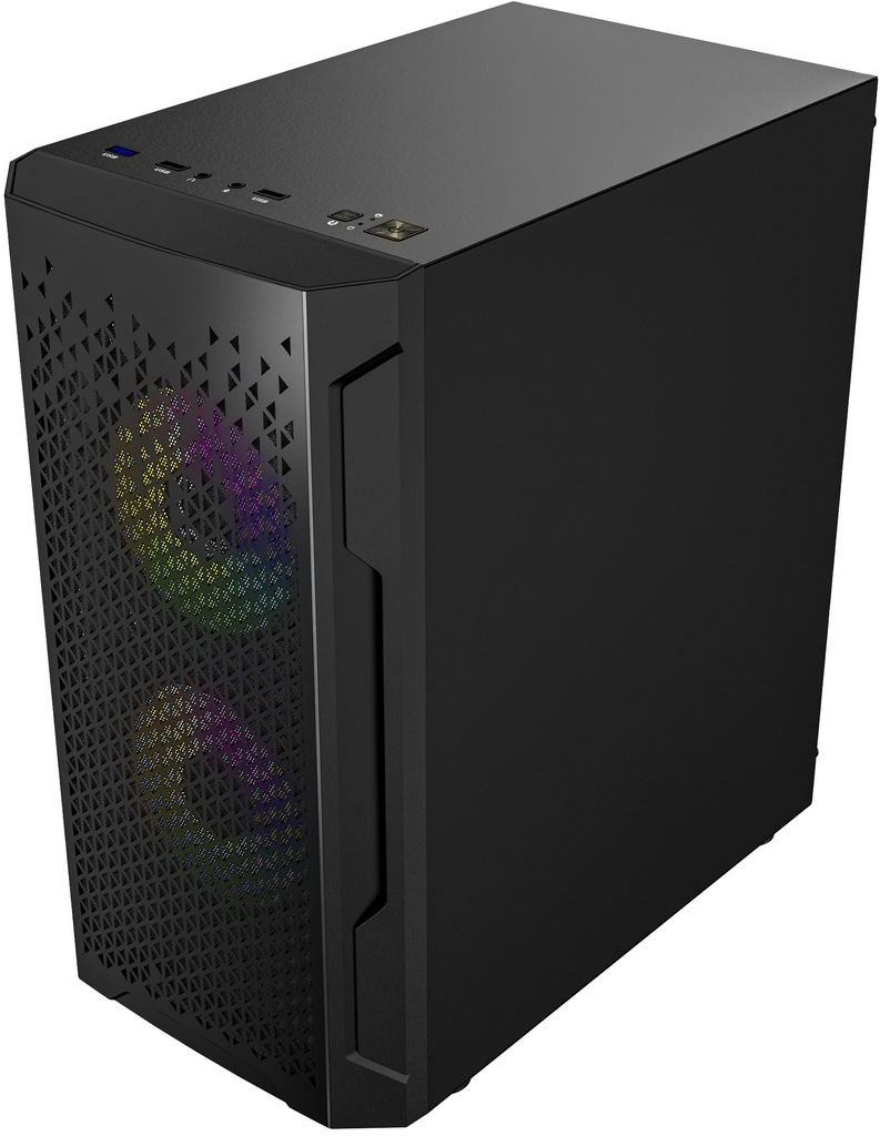PIĘKNO ARGB Obudowa dla graczy musi prezentować się ładnie. Dlatego fabrycznie zainstalowane wentylatory ARGB nadają obudowie i gamingowemu stanowisku urody. Kolor podświetlenia można dowolnie zmienić z predefiniowanych ustawień za pomocą przycisku RESET na panelu sterowania obudowy.