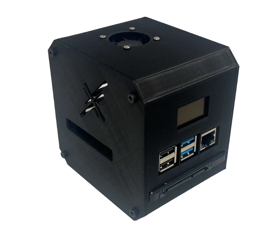 Obudowa typu MiniTower pod komputer Raspberry Pi 4. Posiada otwór na gniazda microHDMI oraz USB-C. Dedykowana pod wyświetlacz OLED 0,96" 128x64.